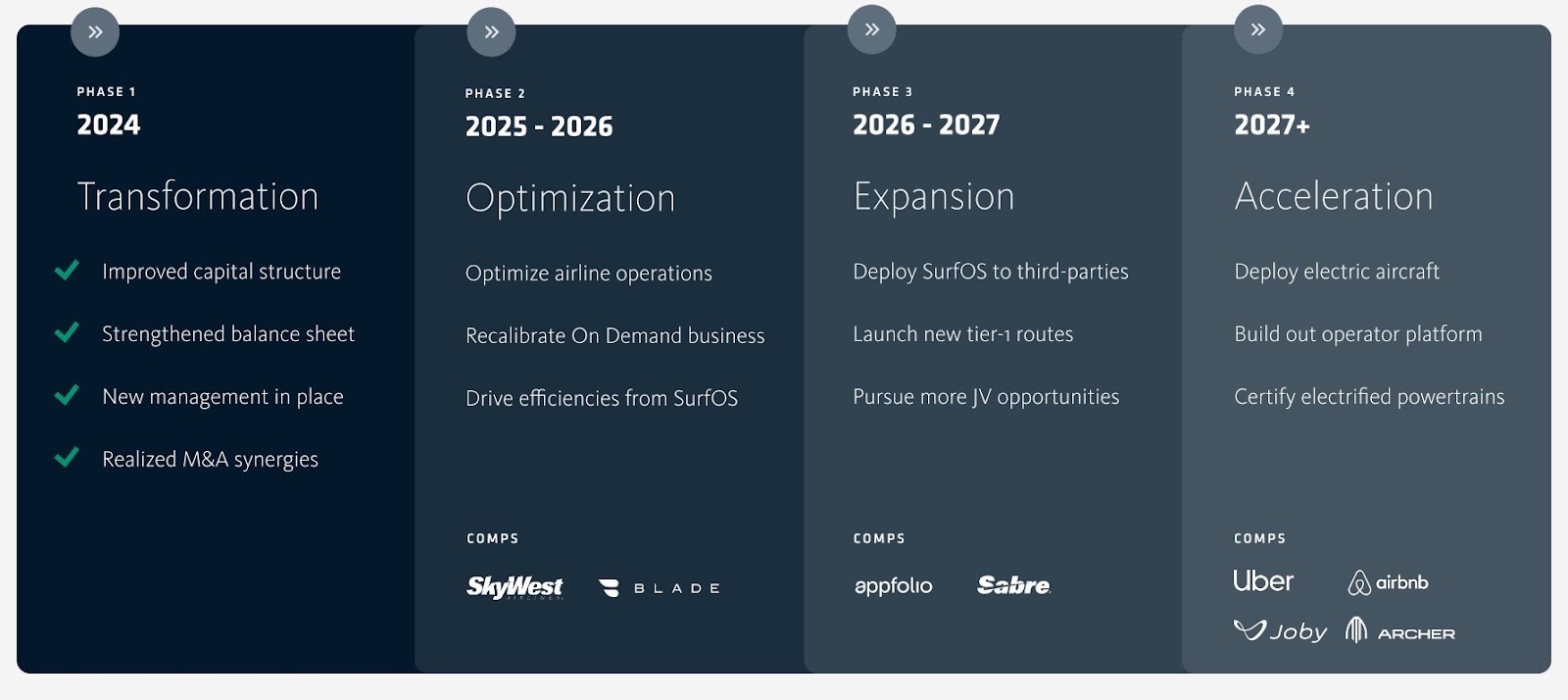 - Air Technology: proprietary aviation software (SurfOS™) and electrification initiatives designed to improve efficiency, margins, and scalability across the network.